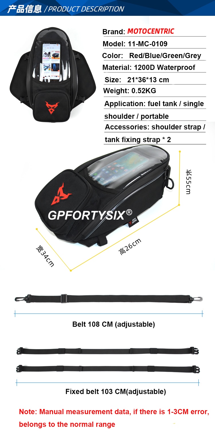 Χαρακτηριστικό: τσάντα δεξαμενής μοτοσικλέτας.