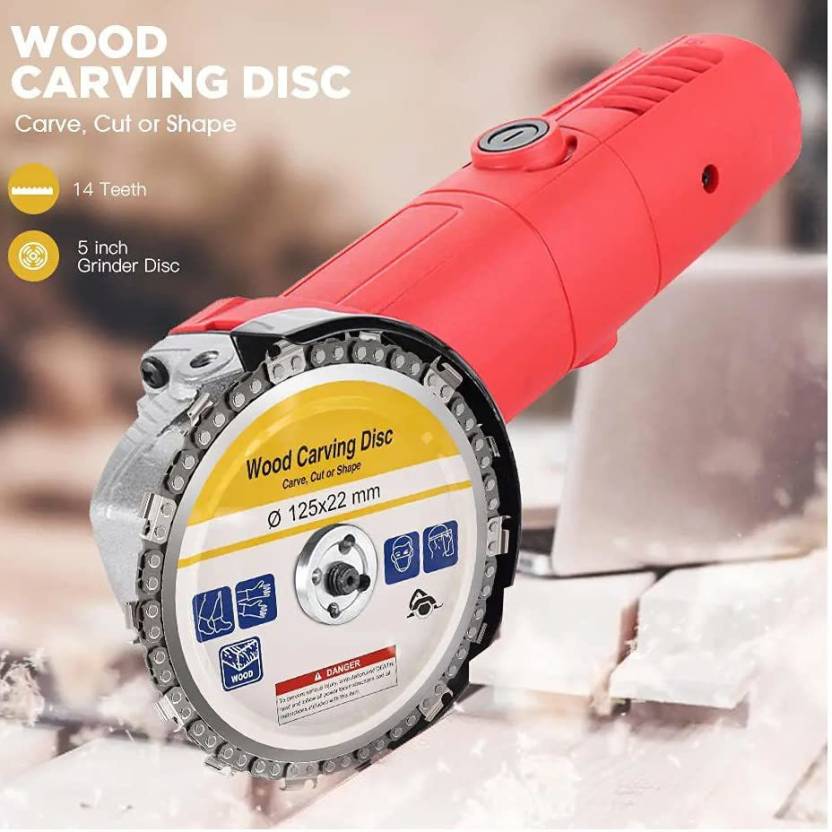 Ο δίσκος ξυλογλυπτικής είναι εύκολος στη χρήση, με γρήγορη ταχύτητα κοπής και υψηλή απόδοση, επομένως είναι ωραίος για καμπύλες εργασίες, όπως το εσωτερικό των μπολ. Έχει επίσης καλή επίδραση στη διακόσμηση των επίπλων, στην τροποποίηση προϊόντων, στο χειροκίνητο diy, στο κόψιμο και ούτω καθεξής, φέρνοντας άνεση στη ζωή σας. Η λεπίδα του αλυσοπρίονου συγκρατείται στη θέση της ανάμεσα σε δύο χαλύβδινες πλάκες που παρέχει ένα ασφαλές κράτημα για σκάλισμα. Ανεξάρτητα από κόκκους ή κόμπους, η λεπίδα κόβει το υλικό με ευκολία στον χρήστη.