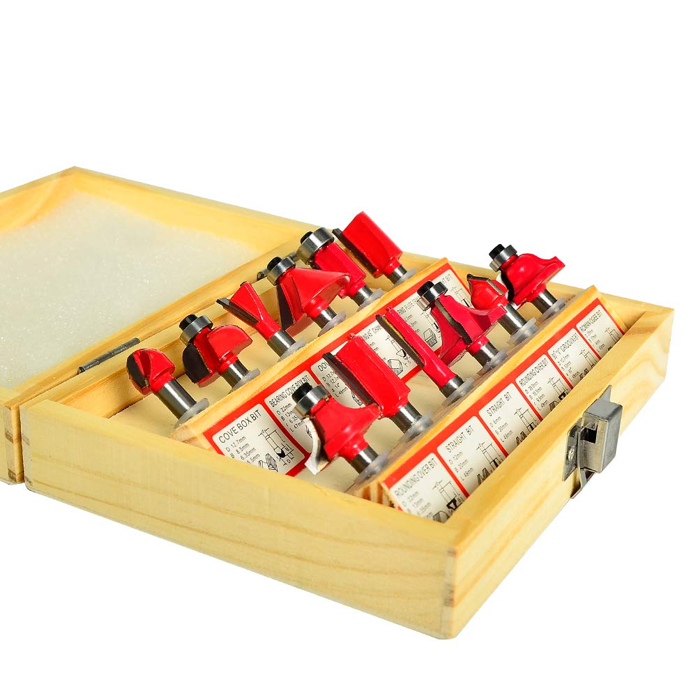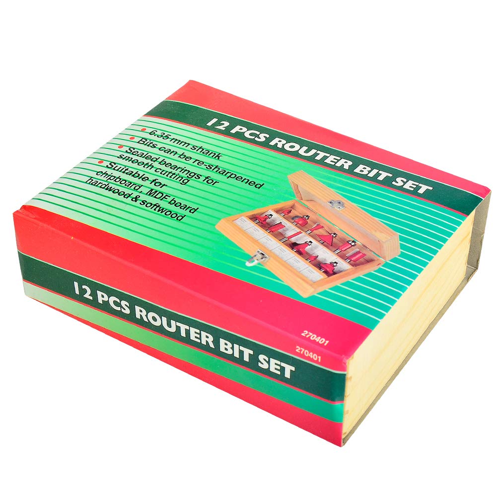 Το σετ περιλαμβάνει 12 φρέζες για ρούτερ με στέλεχος 6,35 mm. Οι φρέζες, είναι σχεδιασμένες για την επεξεργασία σκληρού και μαλακού ξύλου, μοριοσανίδων, κόντρα πλακέ κ.λπ.