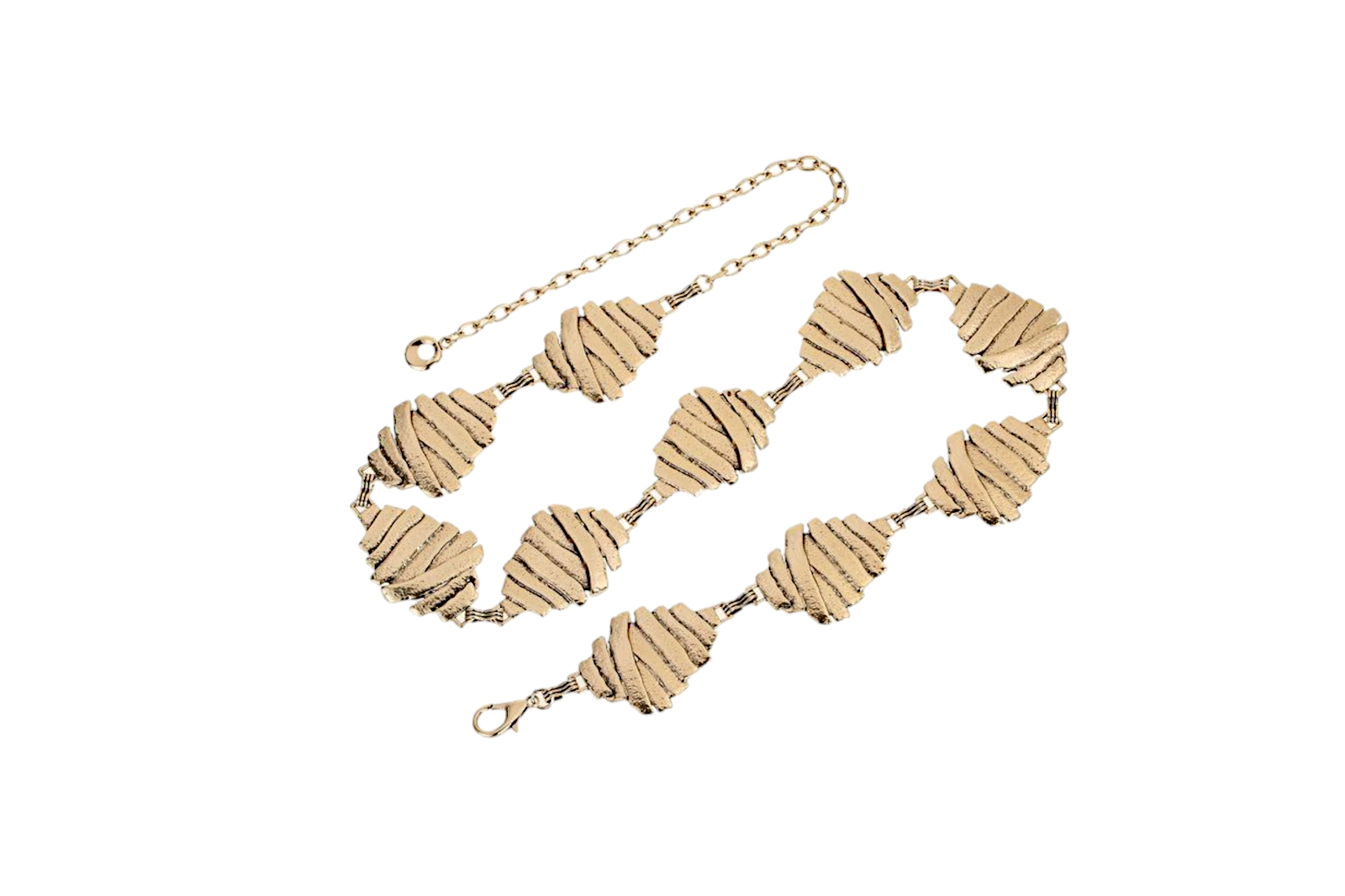 Αναδείξτε τη μέση σας με τη λαμπερή ζώνη-αλυσίδα από τη συλλογή. Διακοσμημένη με εντυπωσιακά κρύσταλλα και διαθέσιμη σε χρυσό και ασημί, προσθέτει μια πολυτελή πινελιά σε κάθε εμφάνιση—ιδανική για φορέματα, ψηλόμεσα παντελόνια, ακόμα και βραδινά σύνολα.