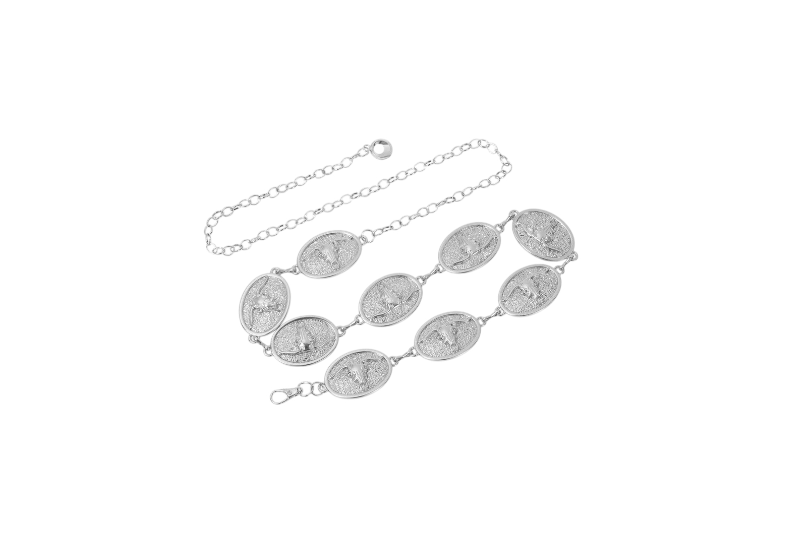 Αναδείξτε τη μέση σας με τη λαμπερή ζώνη-αλυσίδα από τη συλλογή. Διακοσμημένη με εντυπωσιακά κρύσταλλα και διαθέσιμη σε χρυσό και ασημί, προσθέτει μια πολυτελή πινελιά σε κάθε εμφάνιση—ιδανική για φορέματα, ψηλόμεσα παντελόνια, ακόμα και βραδινά σύνολα.