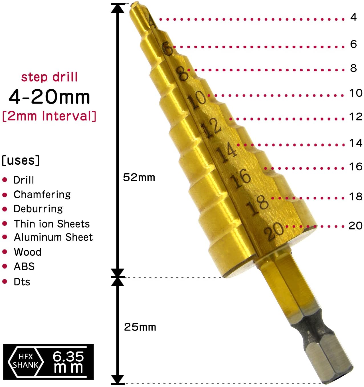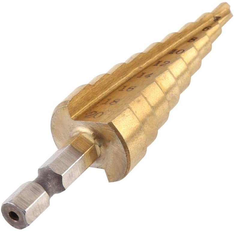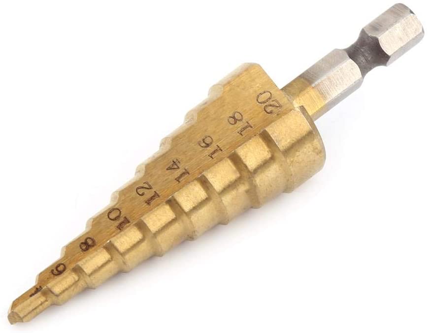 Kωνικό κλιμακωτό τρυπάνι HSS τύπου παγόδα με επικάλυψη νιτριδίου του τιτανίου, είναι κατάλληλο για διάτρηση οπών σε διάφορα υλικά, όπως ανοξείδωτο ατσάλι, ξύλο, λεπτό σίδερο / χαλκό, αλουμίνιο, PVC, ξύλο, πλαστικό κ.λπ.