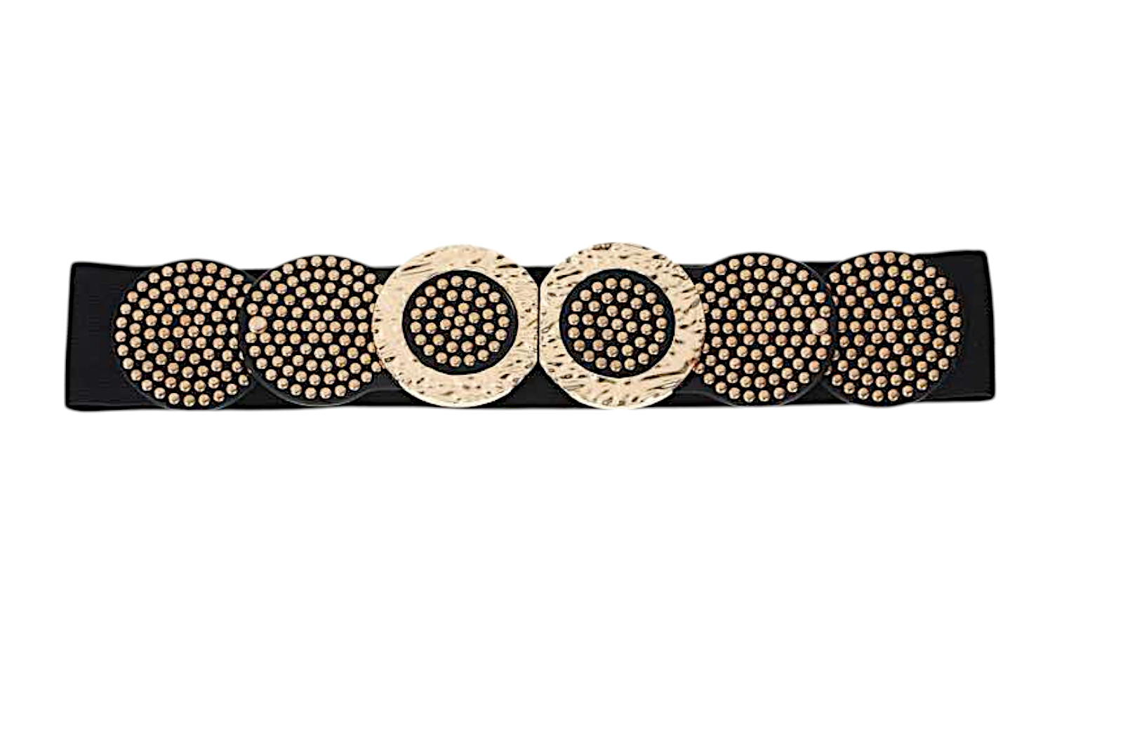 Ανανεώστε κάθε σας εμφάνιση με αυτή την εντυπωσιακή ελαστική ζώνη, σχεδιασμένη για να τονίζει τη μέση και να προσθέτει μια elegant αλλά και statement πινελιά σε κάθε σύνολο. Διαθέτει φαρδύ, άνετο λάστιχο και εντυπωσιακή μεταλλική αγκορά σε κυκλικό σχήμα, διακοσμημένη με λαμπερά τρούκς που δίνουν μοναδικό χαρακτήρα.
