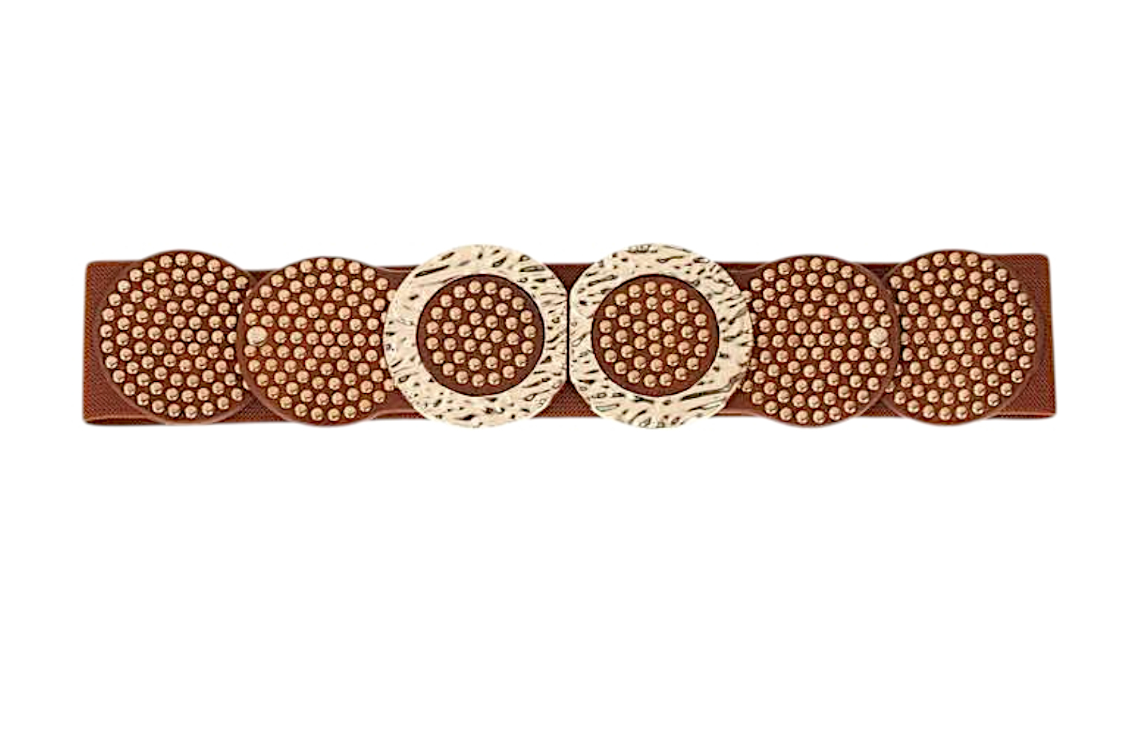 Ανανεώστε κάθε σας εμφάνιση με αυτή την εντυπωσιακή ελαστική ζώνη, σχεδιασμένη για να τονίζει τη μέση και να προσθέτει μια elegant αλλά και statement πινελιά σε κάθε σύνολο. Διαθέτει φαρδύ, άνετο λάστιχο και εντυπωσιακή μεταλλική αγκορά σε κυκλικό σχήμα, διακοσμημένη με λαμπερά τρούκς που δίνουν μοναδικό χαρακτήρα.