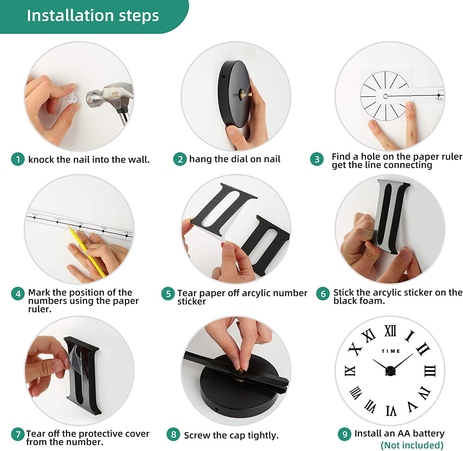 Απολαύστε τη διασκέδαση του DIY: Μπορείτε εύκολα να επεκτείνετε ή να μειώσετε τη διάμετρο του ρολογιού για να ταιριάζει στον τοίχο διαφορετικού μεγέθους. Μπορεί να τοποθετηθεί τέλεια ως διακόσμηση τοίχου τηλεόρασης, σαλονιού ή κρεβατοκάμαρας.