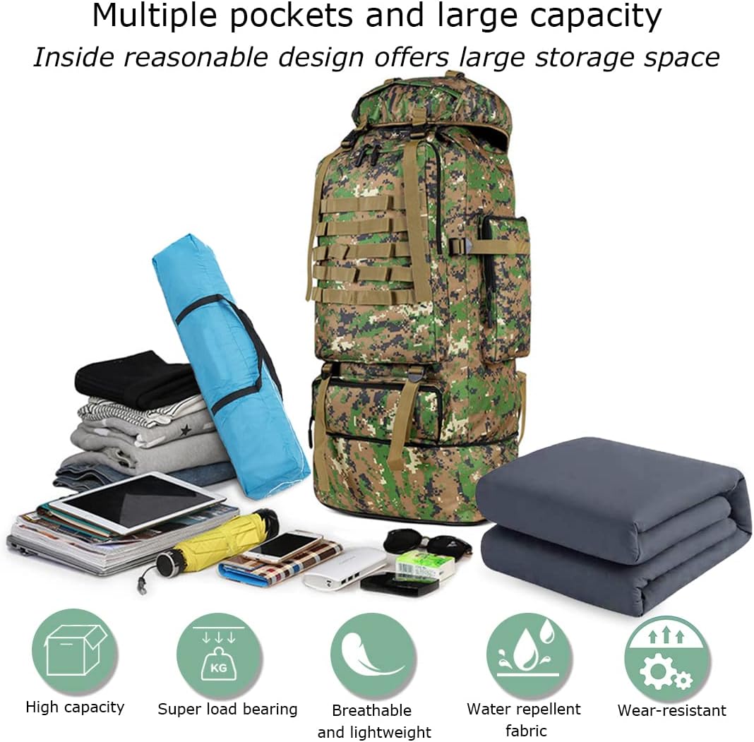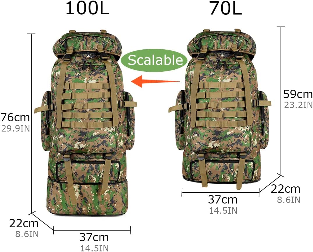 Ευέλικτο & Πρακτικό: Μήκος: 40 cm; Πλάτος: 30 cm; Ύψος: 75-90 cm; Βάρος: 1,7 kg; Αυτό είναι ένα πολύ δημοφιλές σακίδιο εξωτερικού χώρου για άνδρες και γυναίκες. Μπορείτε να το χρησιμοποιήσετε ως σακίδιο κυνηγιού, σακίδιο πεζοπορίας, σακίδιο κατασκήνωσης, σακίδιο τακτικής, σακίδιο ταξιδιού, κιτ επιβίωσης κ.λπ. Κατάλληλο για ποδηλασία, πεζοπορία, ψάρεμα, κυνήγι, επιβίωση, αθλήματα, κάμπινγκ.