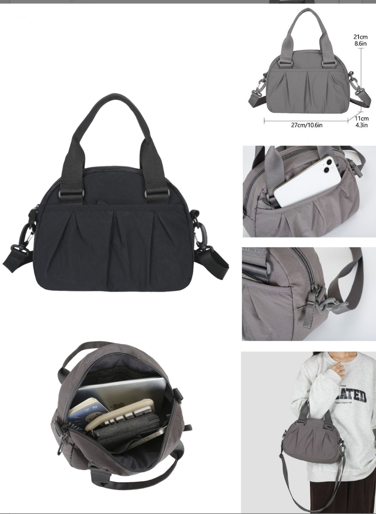 Διπλές λαβές χειρός και αποσπώμενος ιμάντας ώμου για crossbody χρήση