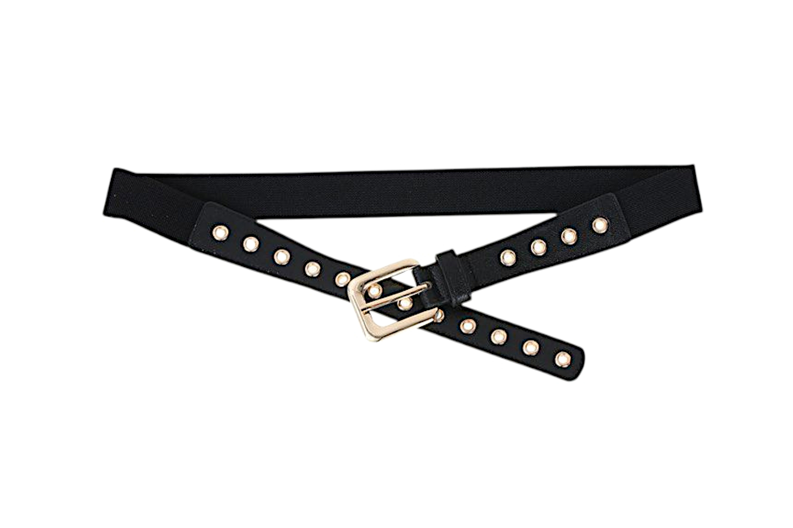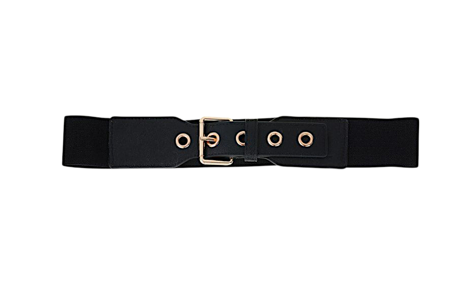 Γυναικεία ζώνη ελαστική με διπλή αγκράφα ΜΑΥΡΗ ΜΕ ΧΡΥΣΟ