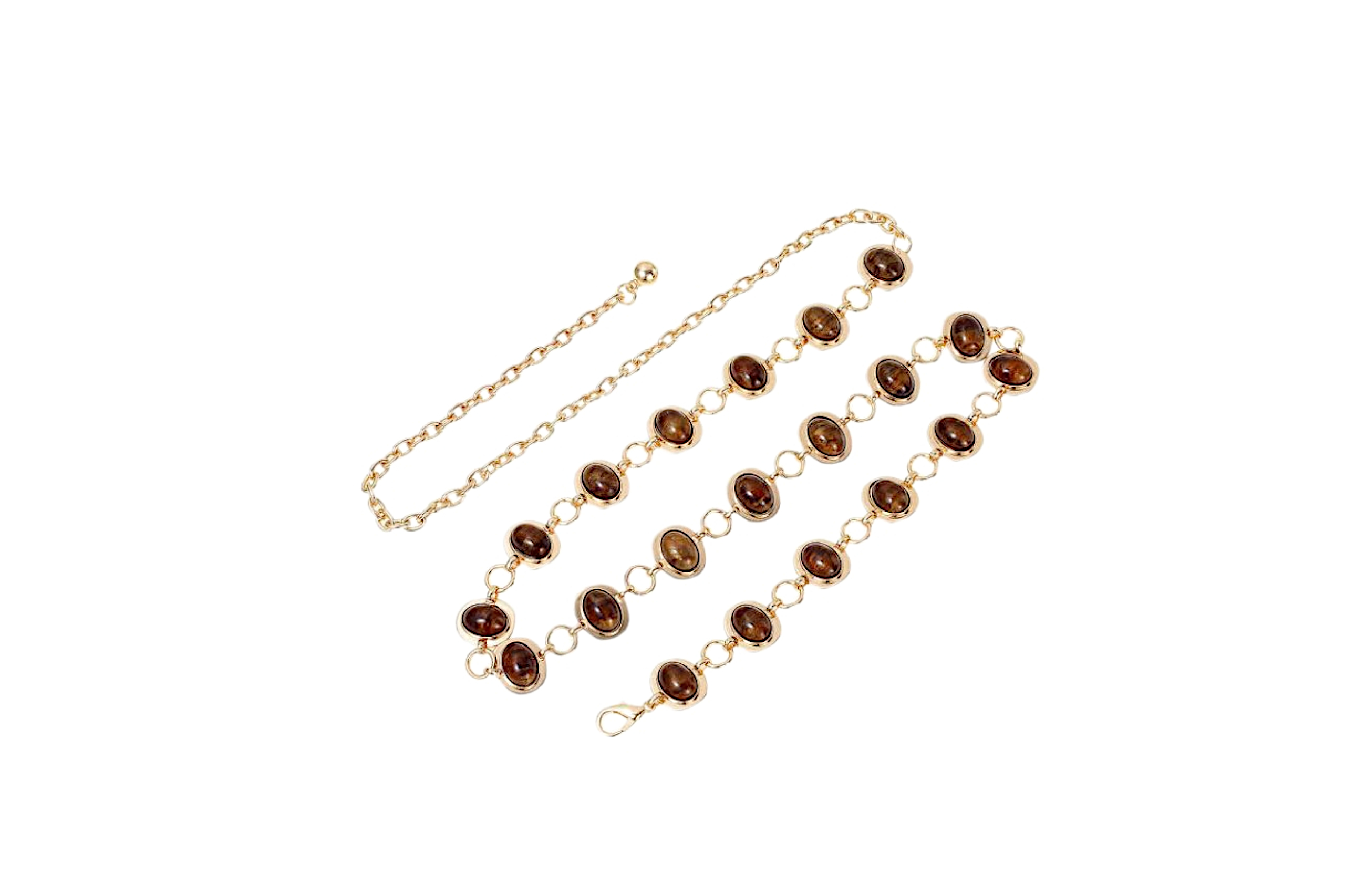 ΓΥΝΑΙΚΕΙΑ ΖΩΝΗ ΑΛΥΣΙΔΑ ΜΕΤΑΛΛΙΚΗ RETRO ΜΕ ΠΕΤΡΑΔΙΑ ΣΕ ΚΑΦΕ ΧΡΩΜΑ KSG167BR