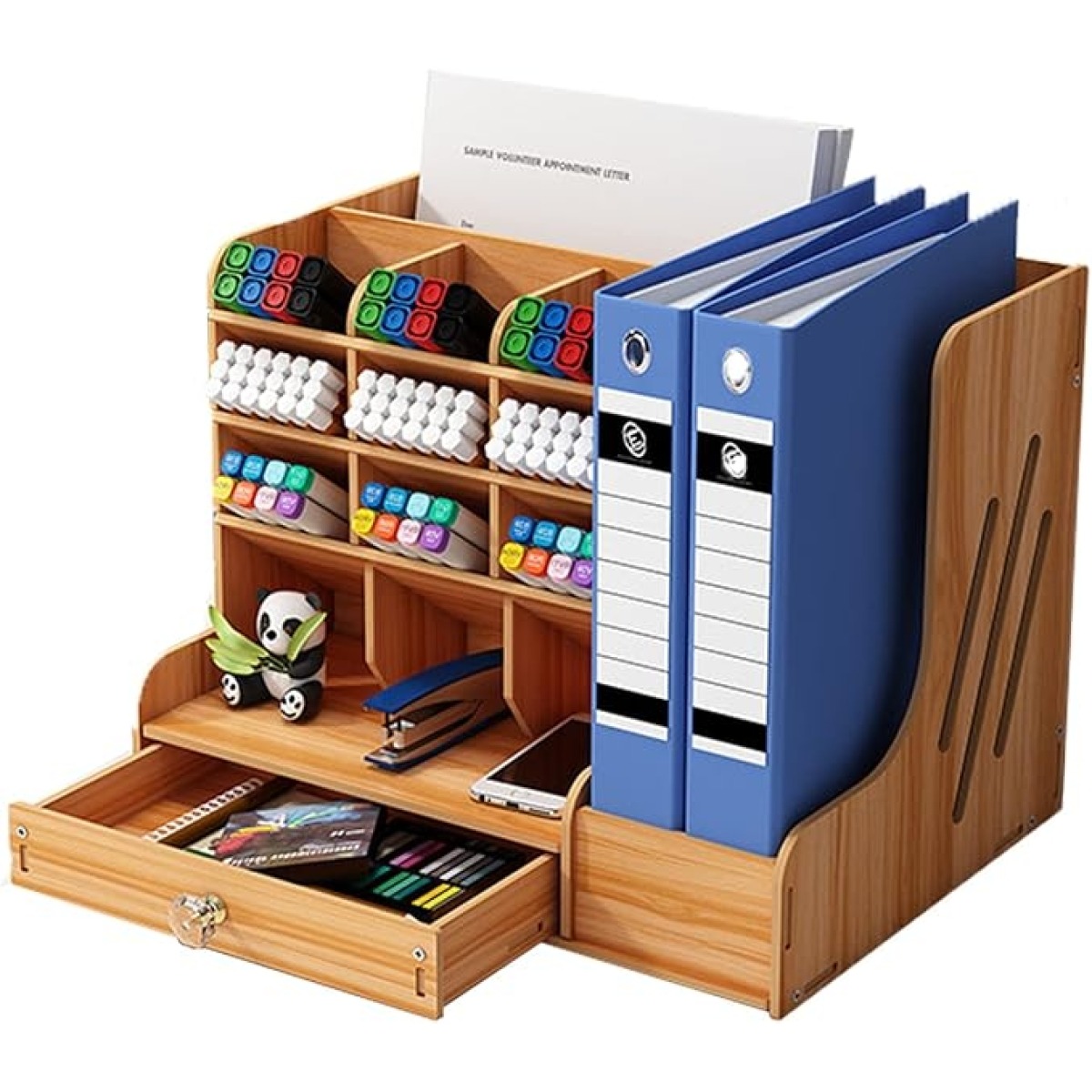 Ξύλινος Οργανωτής Γραφείου με Ράφια, Συρτάρι και Χώρο για Ντοσιέ – Καφέ SZN750